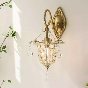 Crystal Flower European Design LED Wall Lamp with Remote Control Copper Finish Bathroom Use 2700K Soft Warm White Light